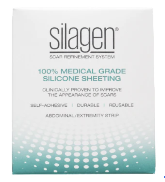 Reusable self-adhesive abdominal strip clinically proven to improve the appearance of scars.